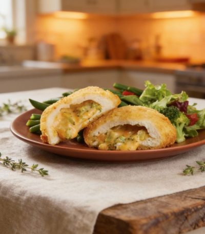 Escalopes de poulet farcies brocoli‑cheddar