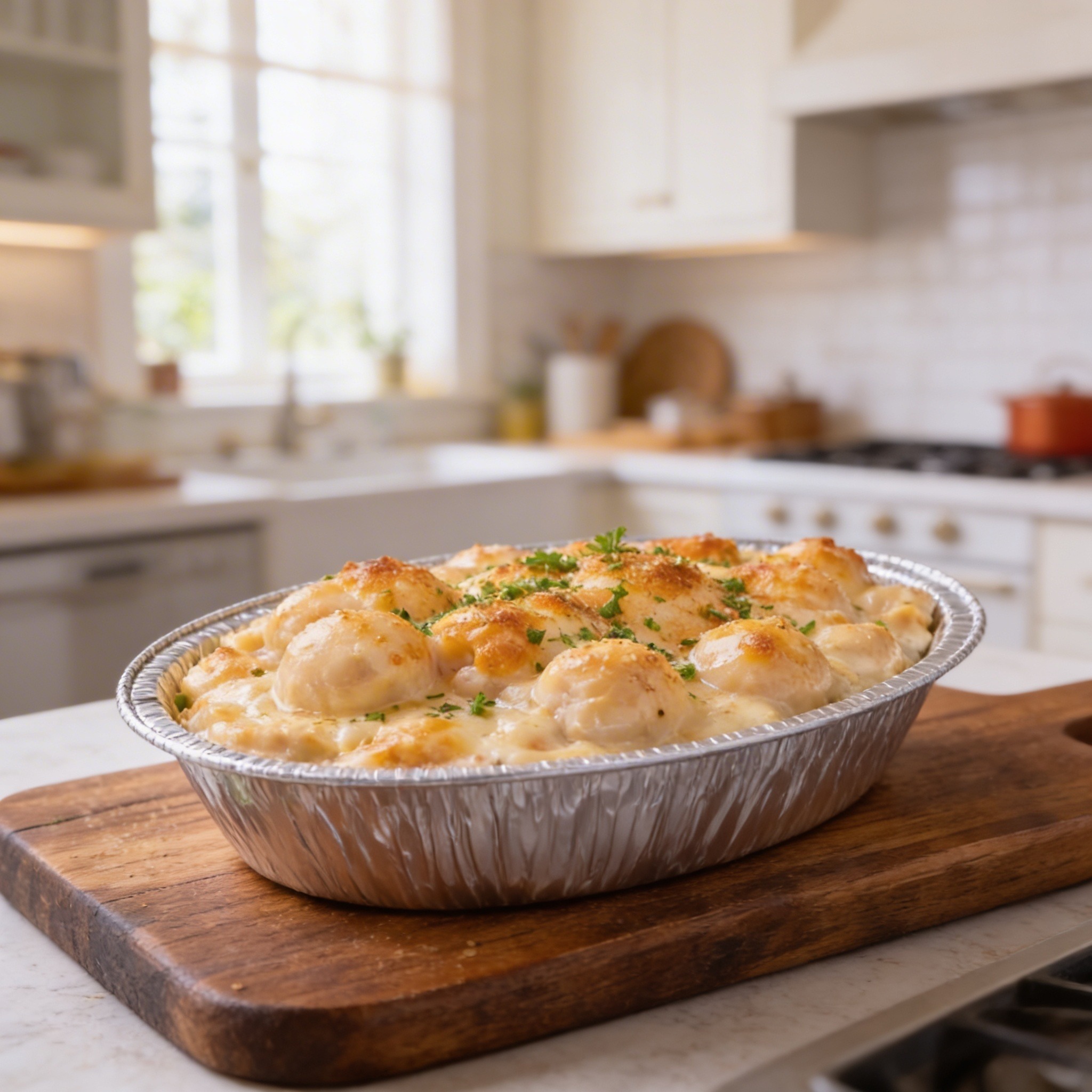 Délicieuse coquille St-Jacques garnie de pétoncles tendres, de fruits de mer et d’une sauce crémeuse savoureuse, le tout gratiné à la perfection. Idéale pour un repas rapide, raffiné et prêt à cuire au four.