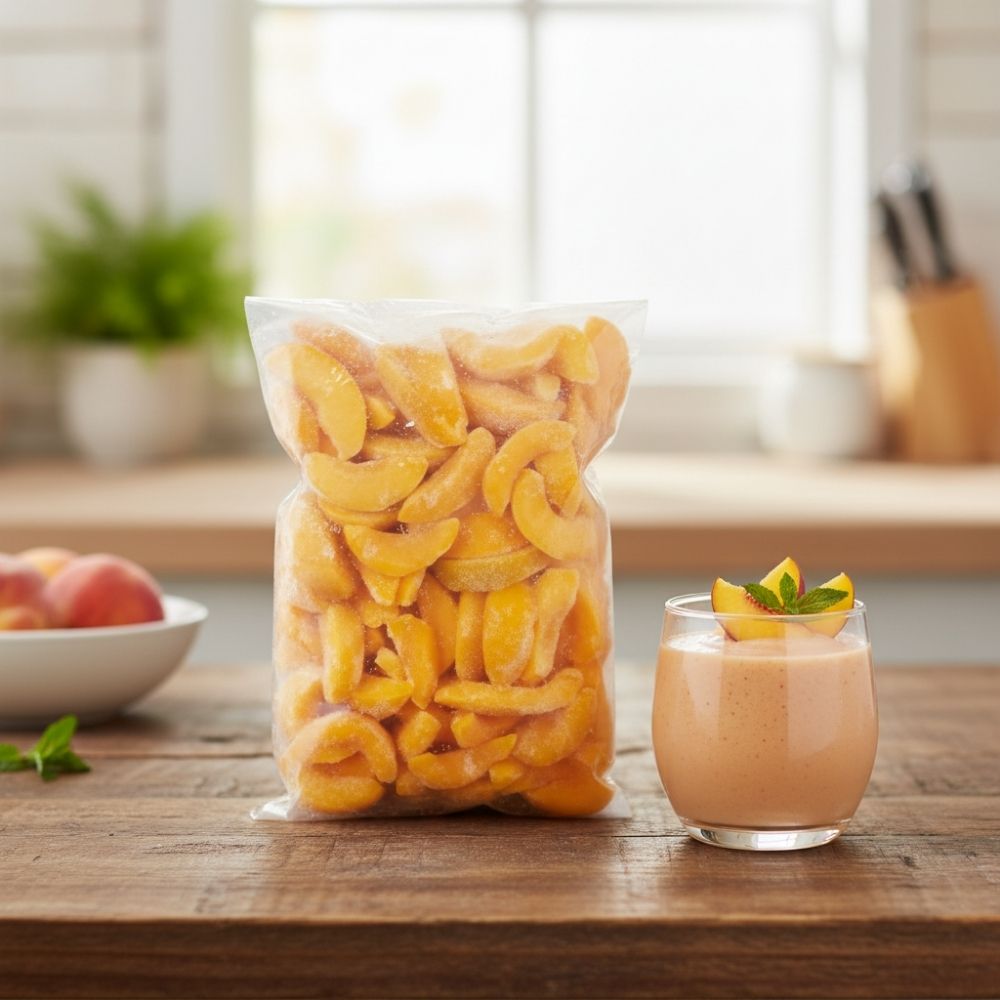 Les pêches tranchées congelées sont préparées à partir de fruits mûrs et juteux, soigneusement pelés, tranchés puis surgelés afin de préserver leur saveur douce et naturellement sucrée. Parfaites pour les smoothies, desserts, compotes ou comme collation saine.
