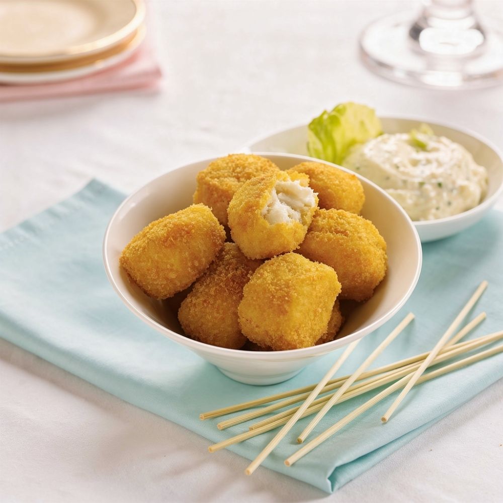 Les pépites de morue panées sont composées de morceaux de morue tendres et délicats, enrobés d’une panure dorée et croustillante. Leur chair blanche et feuilletée contraste avec l’enrobage croquant, offrant une bouchée légère et savoureuse. Idéales pour les repas rapides, accompagnées de frites ou de légumes