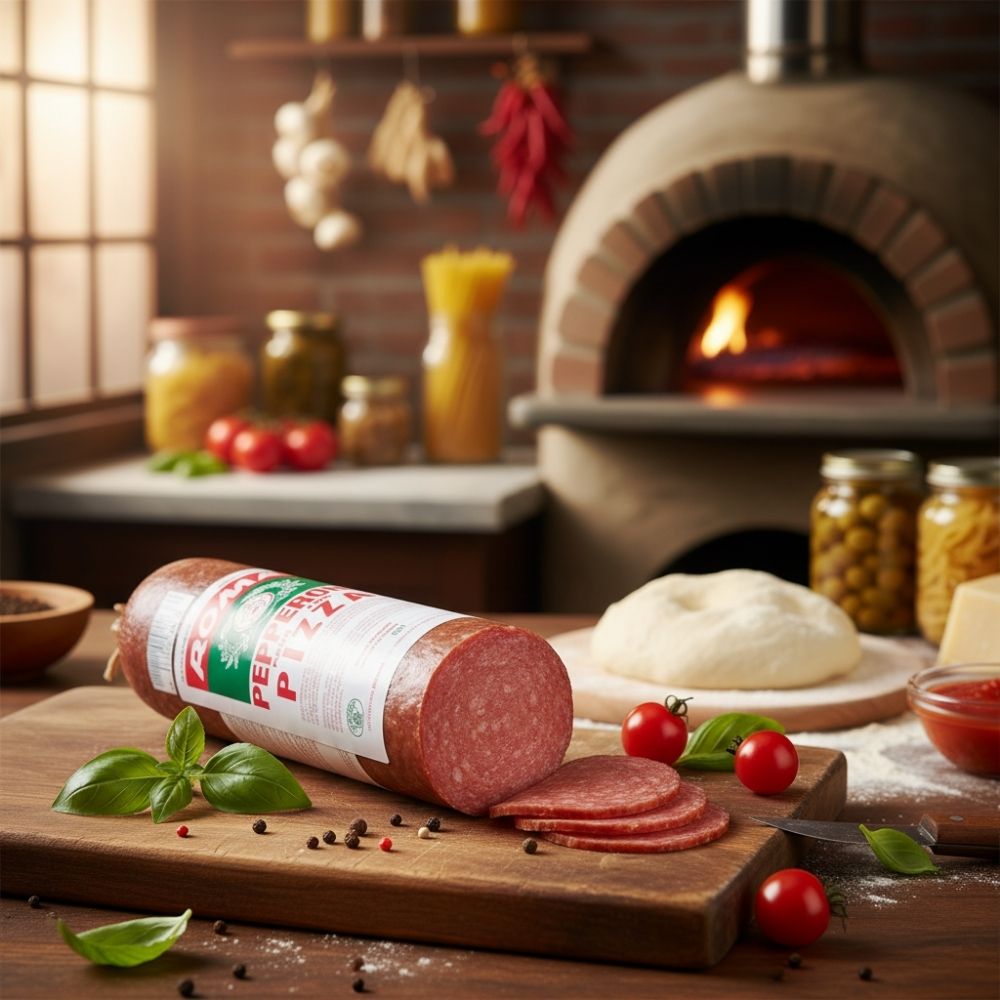 Le pepperoni Roma est une charcuterie savoureuse et relevée, préparée à partir de viande finement assaisonnée avec des épices typiques du pepperoni. Parfait pour les pizzas, sandwiches ou comme collation sur un plateau de charcuterie.