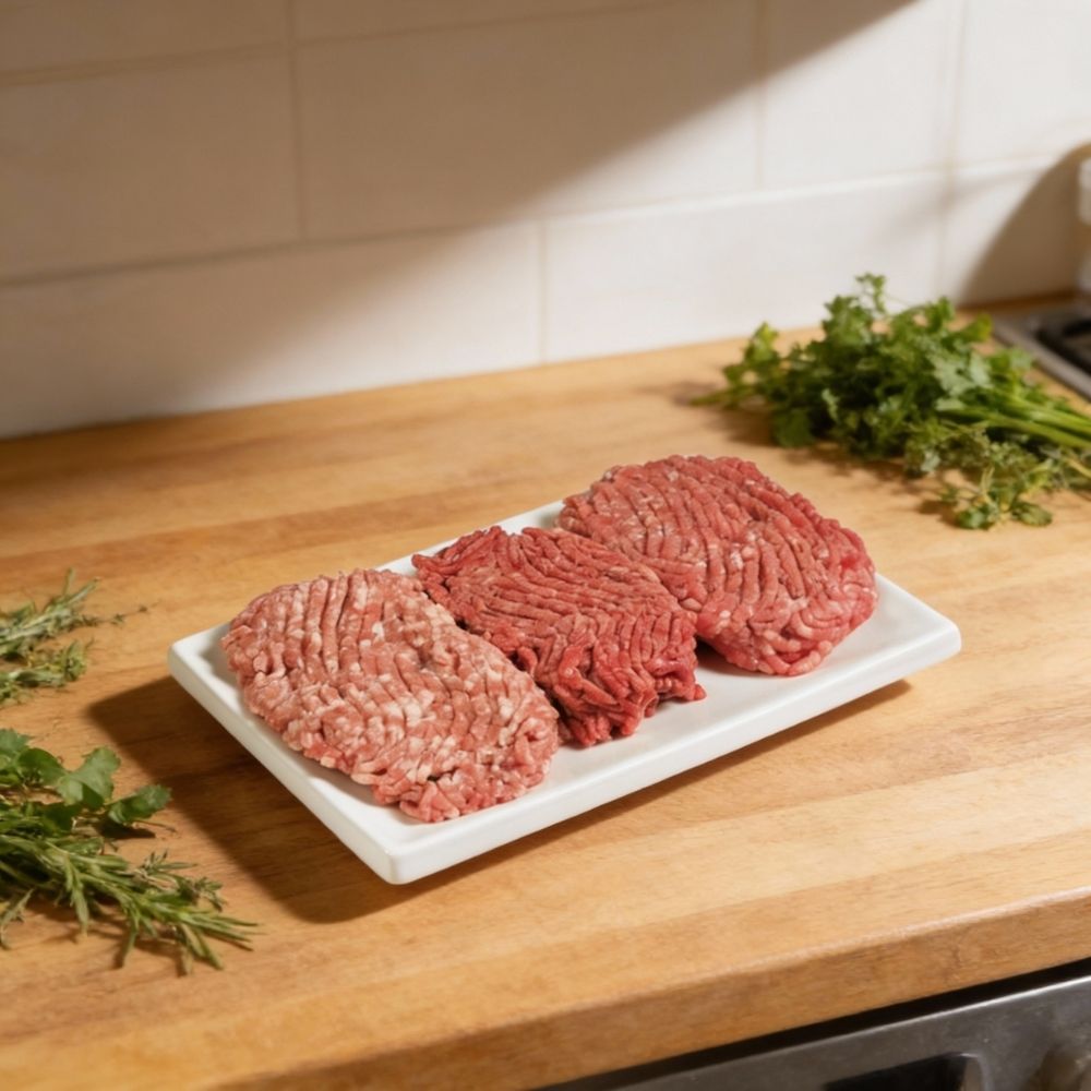 Mélange haché composé d’un tiers de bœuf, un tiers de porc et un tiers de veau, tendre et savoureux, prêt à cuire.